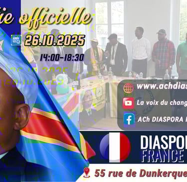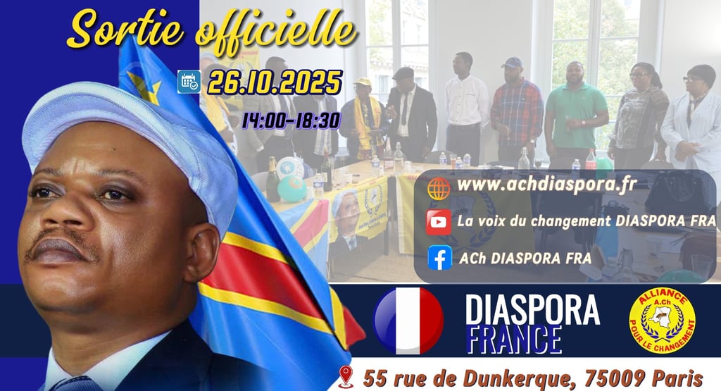 Mulhouse, le 09 Octobre 2025 - La fédération France de l'Alliance pour le Changement (ACh) Diaspora France est fière d'annoncer sa sortie officielle, qui aura lieu ce dimanche 26 Octobre 2025, de 14:00 à 18:30, à l'Espace 55, sis au n°55 Rue de Dunkerque, 75009 Paris.