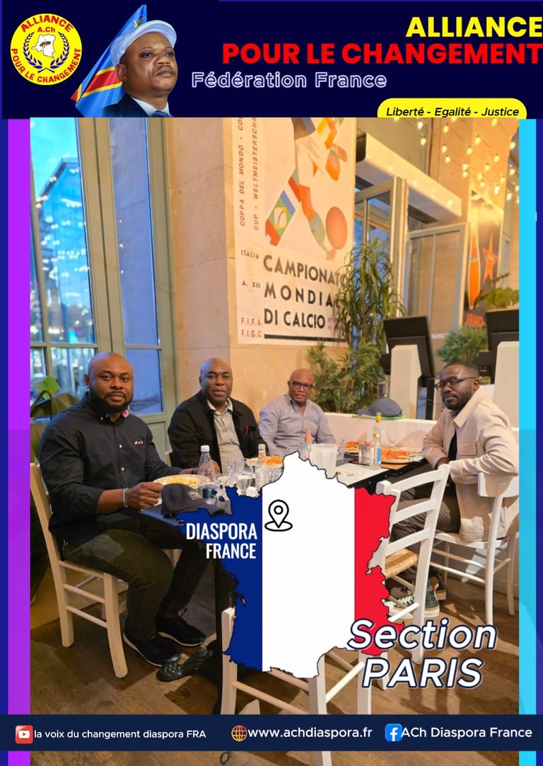 La section de Paris de l'Alliance pour le Changement - Fédération France a tenu sa première réunion sectionnaire à Paris, ce samedi 23 août 2025. Sous la supervision du vice-président fédéral le docteur Patrick Mbadu et le président cellulaire Monsieur Joe Phoba, cette réunion inaugurale était basé sur la prise de contact des membres résidents dans l’Ile-de-France.